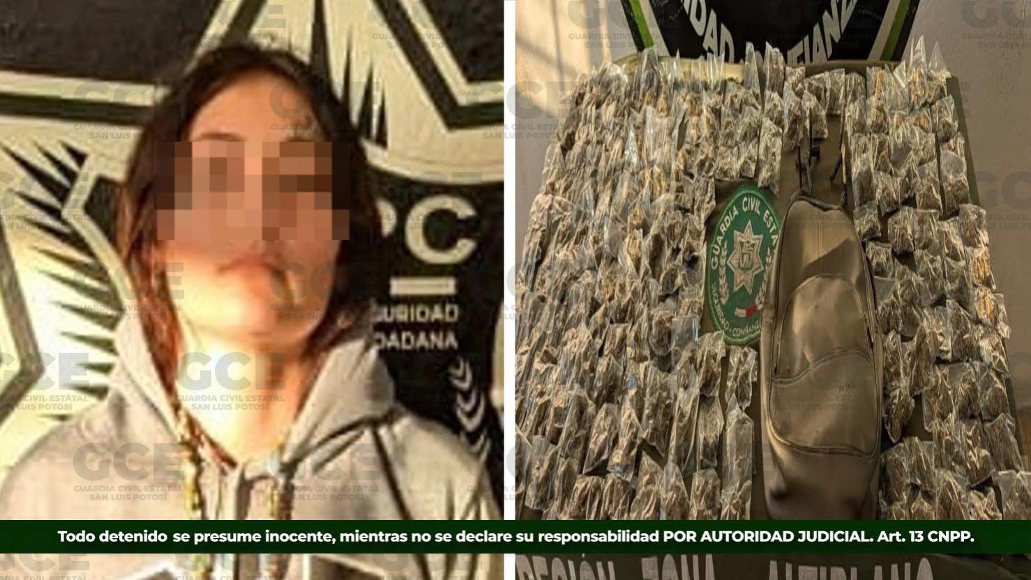 Elementos de la Guardia Civil Estatal detuvieron en Cedral a una joven de 22 años, identificada como Bertha “N”, señalada por su presunta participación en delitos contra la salud.
