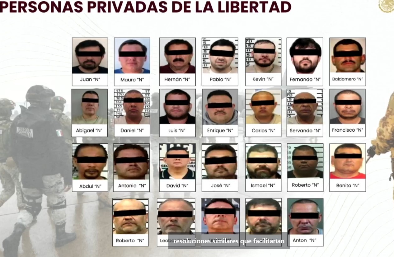 García Harfuch indicó que estas 26 personas contaban con ordenes de extradición y enfrentaban diversas investigaciones en Estados Unidos por delitos como tráfico de personas, homicidios, lavado de dinero, trasiego de drogas, delitos con arma de fuego y delincuencia organizada.