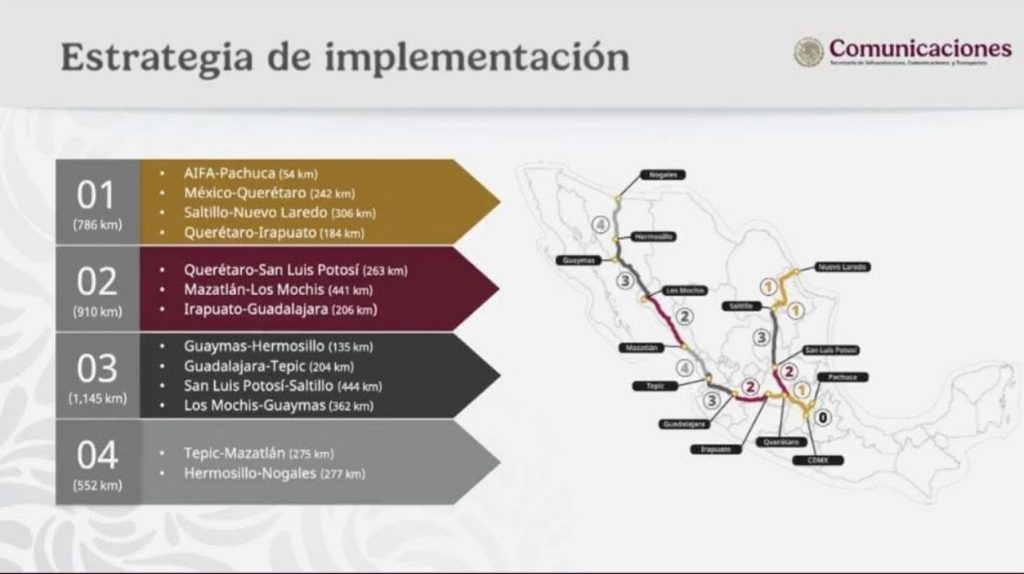 Esta realización contará de 4 fases en donde los trabajos para el estado estarían contemplados en la fase 2 y 3. Cabe recordar que las rutas que se tienen contempladas desarrollar son CDMX a Nogales, Sonora; CDMX a Laredo, Tamaulipas y el Tren Maya de carga.